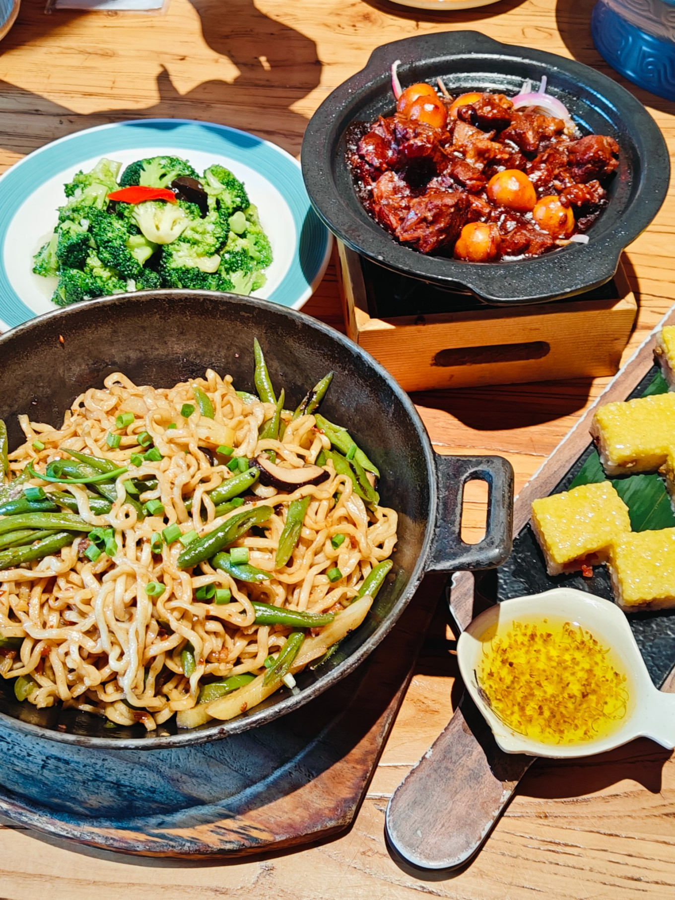铁锅焖面也很好。里面有豆角。怎么吃都不腻。